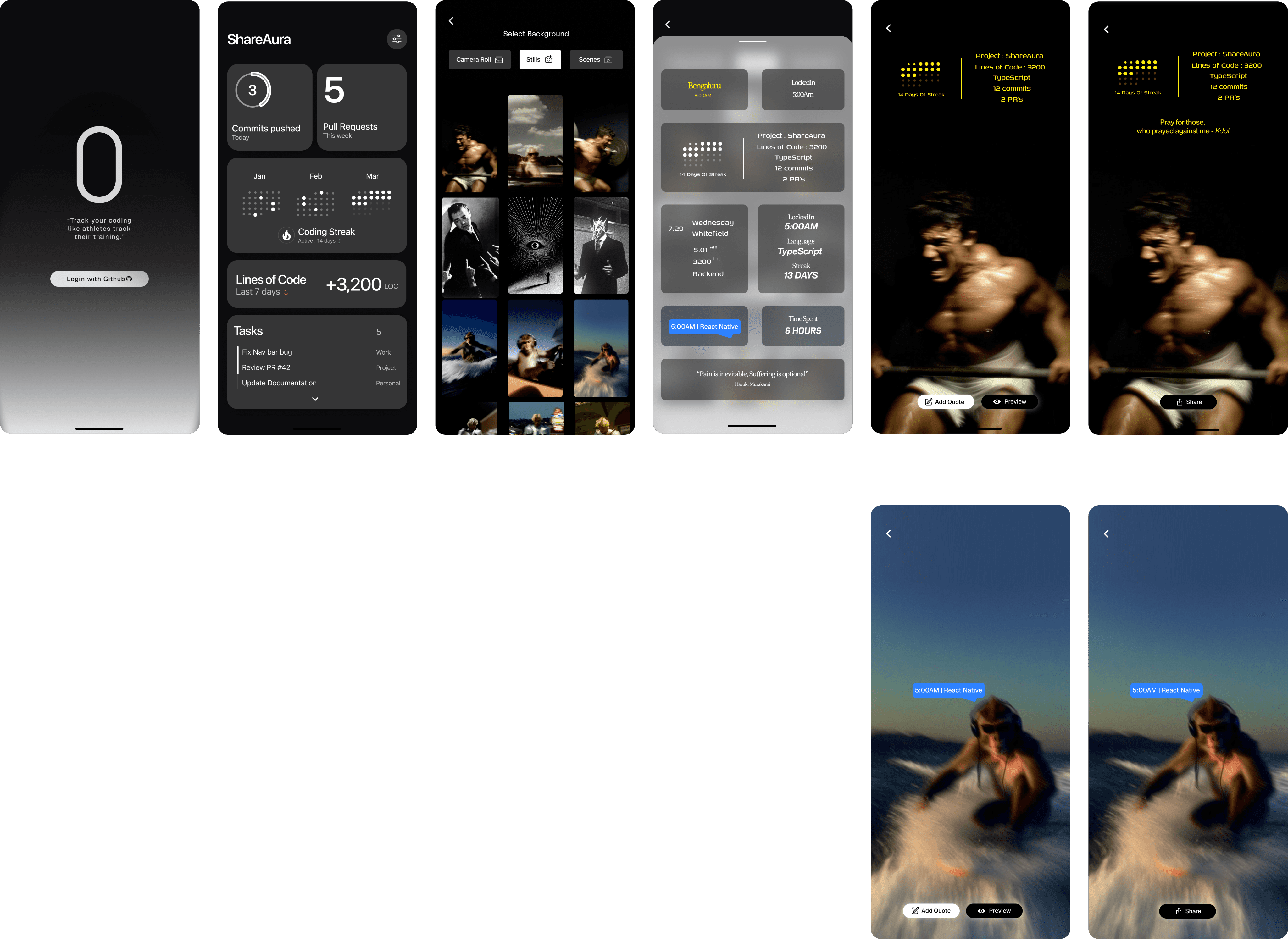 ShareAura is a personal concept app I designed to make coding progress more visual and motivating.